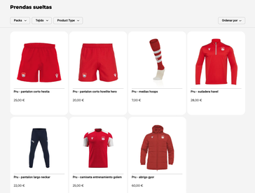 La equipación de juego se solicita con este formulario , que incluye la camiseta de juego, pantalón, medias y sudadera.